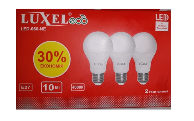 **Акція! Лед-лампа 10W Е27 Люксел 3шт/уп 68658**