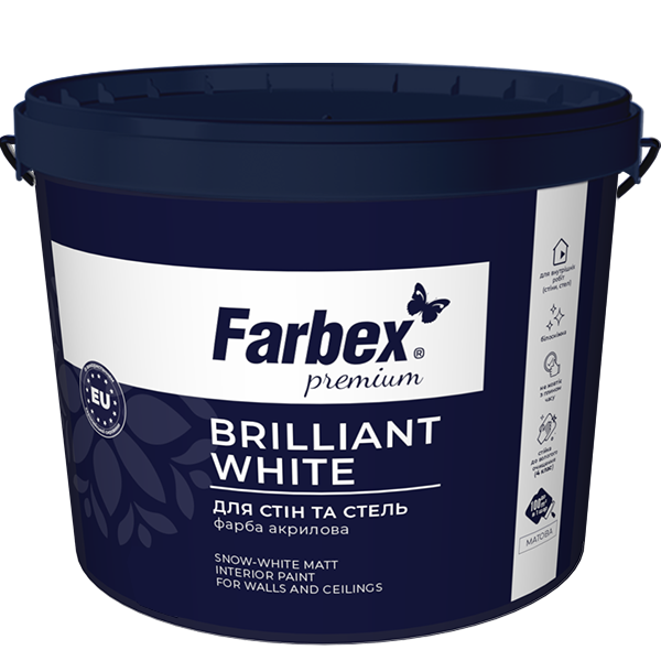 Фарба Фарбекс Brilliant White – ваш надійний вибір для створення світлих і стильних інтер’єрів!