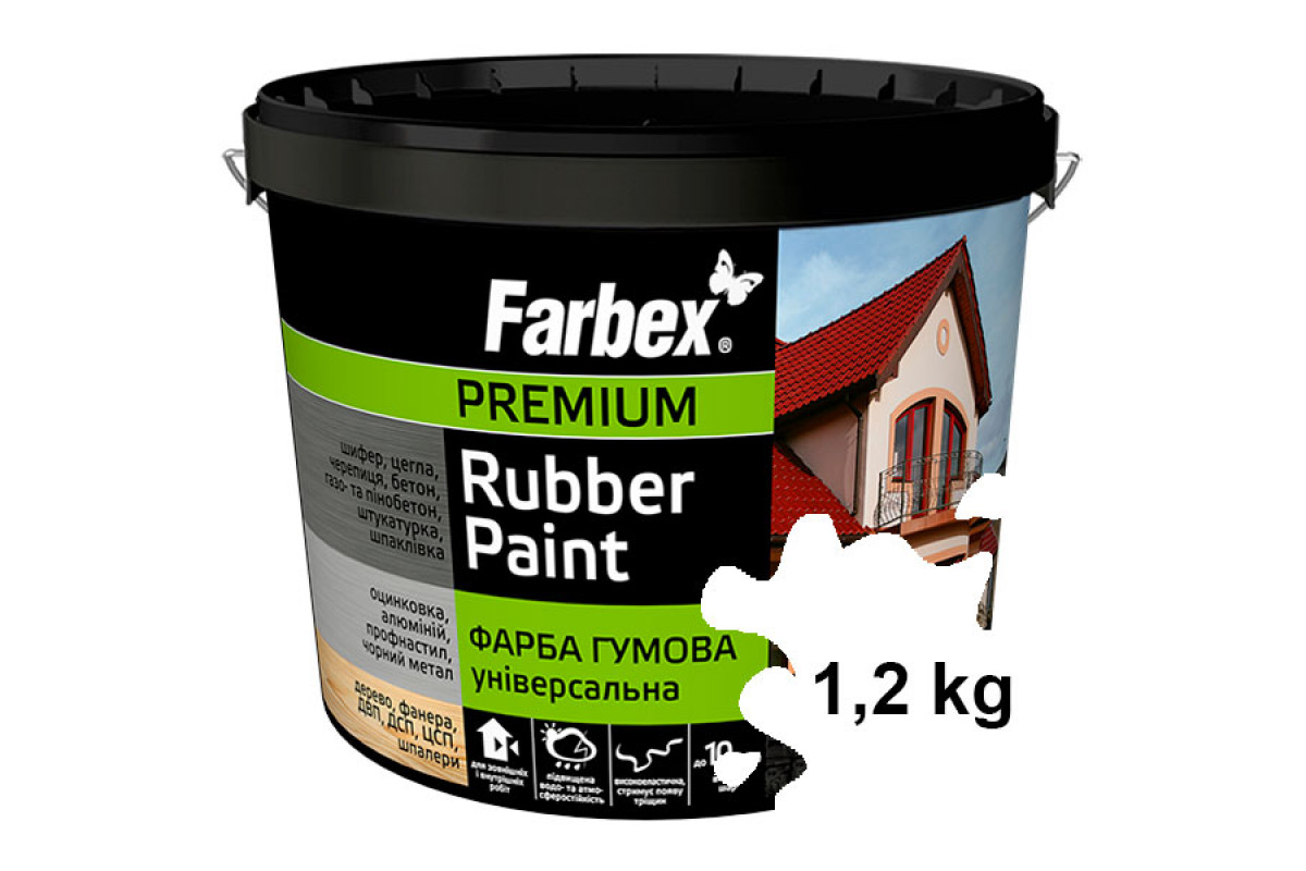 ### Технічний опис товару: Фарба гумова біла 1,2 кг Фарбекс